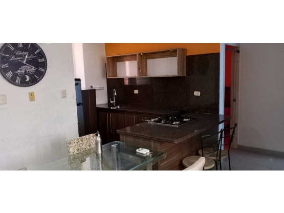 el aprtamento queda amueblado, con pisos de ceramica,  con nevera totalmente operativa, cama matrimoinial en cuarto princiapal, un cuarto con cama para niño(depediendo de la edad). juego de comedor de vidrio con 4 sillas, mas dos para meson de cocina, tiene sofa cama, tanque de 1000litros con tu bomba.